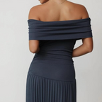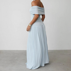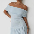 ✨ Diseño favorecedor – El escote off-shoulder y los pliegues crean una silueta elegante.